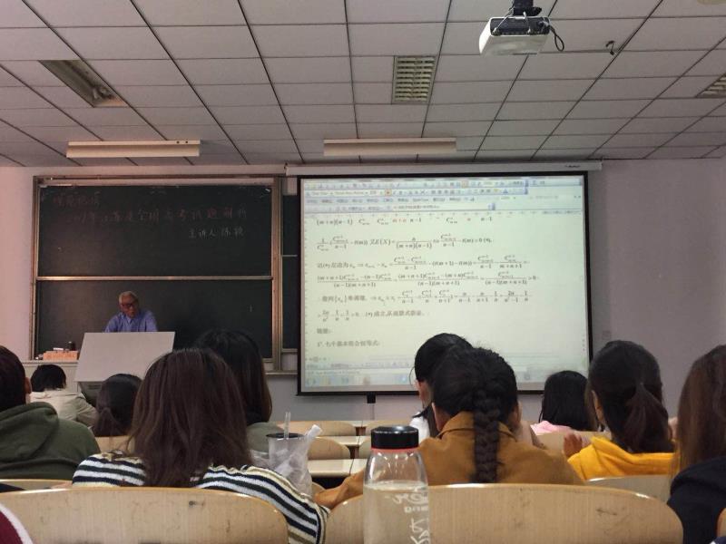 陈颖老师以“2017年江苏及全国高考试题解析”为题,重点分析了2017年江苏省高考数学试卷各大题的解题过程、解题方法、试题特点、命题背景及命题思路。同时,对2017年全国高考数学试题也进行了比较详细的分析。陈颖老师在报告中从数学解题所要具备的基础知识、基本技能,如何透彻理解教材,如何发挥数学思想方法在解题中的指导作用,解高考题需要注意的问题等方面深入分析了提高数学解题能力必备条件和基本途径。他认为,提高数学解题能力首先要打好数学基础,这是提高解题能力的根本;其次,要掌握一些重要的数学方法和一些常见的数学模式,这是提高解题能力的重要途径;再次,要善于进行题后总结,这是通过解题能力的保障。他认为,作为未来的数学老师,要充分利用pornHD 的有利条件,打好坚实的数学基础,提高自己的教育教学技能,争取将来成为本专业的佼佼者。
