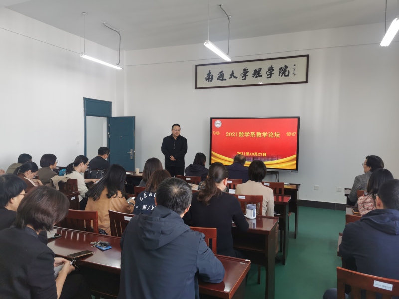 10月27日下午,理学院举行2021数学系教学论坛,教务处华亮处长、理学院院长陈玉娟、教学副院长王林峰出席,会议由数学系主任陆海华主持。
