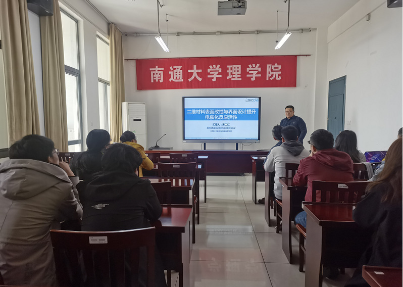 11月16日下午,中科院上海硅酸盐研究所宋二红副研究员应邀来pornHD 指导,并做了“二维材料表面改性与界面设计提升电催化反应活性”的学术报告,由理学院仲崇贵副院长主持,物理专业教师和专业研究生听取了报告。