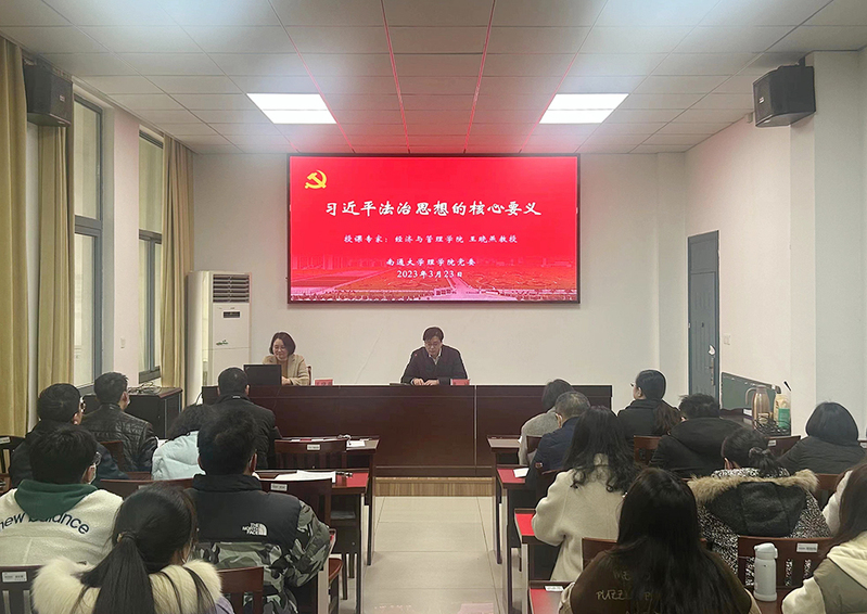 3月23日下午,理学院召开党委理论学习中心组(扩大)学习会,邀请经济与管理学院王晓燕教授作《“习近平法治思想的核心要义”与“学《宪法》”》专题讲座。