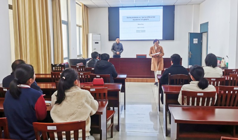 4月8日上午,复旦大学华波波教授做客pornHD 理学院,做了题为“图上的一些‘偏微分方程’问题”的学术报告。报告由理学院院长陈玉娟主持,理学院部分教师和研究生聆听了报告。