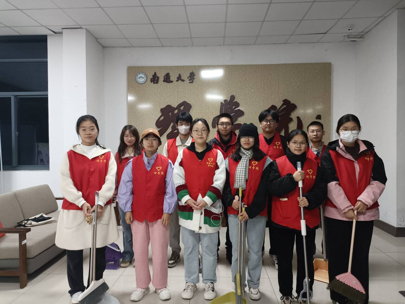 “爱倍加”志愿服务队成员按照各自分工开展卫生清扫志愿活动。对理科楼大厅、实验室和微格教室分责任区进行细致打扫,确保教学环境区地面整洁、桌椅摆放有序、讲台黑板干净,用实际行动维护校园整洁和谐。