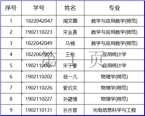 根据教育部《2023年全国硕士研究生招生工作管理规定》、南通大学《关于做好推荐2023年优秀应届本科毕业生免试攻读硕士学位研究生工作的通知》和《理学院2023年推荐优秀应届本科毕业生免试攻读硕士学位研究生工作实施细则》等相关文件要求精神,经学生自主申报,学院审核,现将拟推荐2023年免试攻读硕士学位研究生名单公示如下: