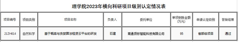 根据《南通大学横向科研项目级别认定实施细则(修订)》等相关规定,经个人申请,学院学术委员会组织评审及答辩,现将答辩结果予以公示。如有异议,请与学院办公室联系。