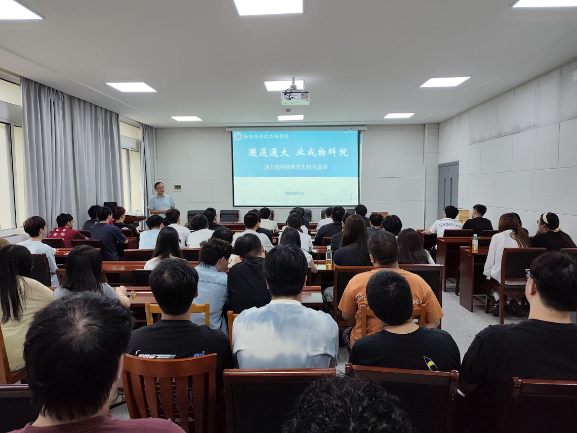 于忠卫从校院基本概况、研究生招生政策、研究生培养体系、研究生就业去向和优秀团队与优秀导师等五个方面展开宣讲,欢迎同学们在考研报名时选择南通大学物理科学与技术学院。通大物科院立足于物理学一级学术硕士点和光学信息工程专业硕士点招收研究生,招生人数逐年增多,培养质量高、学生就业率达到100%,连续多年获得校研究生就业工作先进单位,广受用人单位好评。