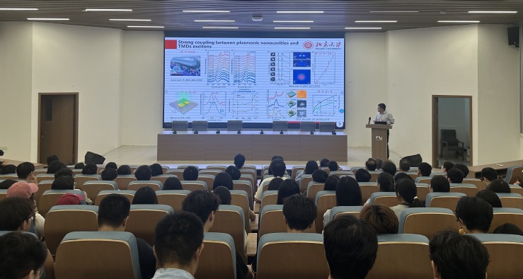 许秀来介绍了其课题组在量子点单光子光源领域取得的一系列重要进展。他重点展示了二维激子的调控以及与等离激元纳腔的相互作用中,成功将实现强耦合所需的激子数降至8个的研究结果。他还介绍了基于III-V族半导体量子点与光子晶体微腔,微盘微腔以及纳米悬臂梁腔的相互作用与模式调控,以及单量子点在片上波导中的集成以及手性传输。此次讲座为学院师生提供了与领域内顶尖学者面对面交流的宝贵机会,有效拓宽了师生的学术视野,激发了大家的科研创新热情。