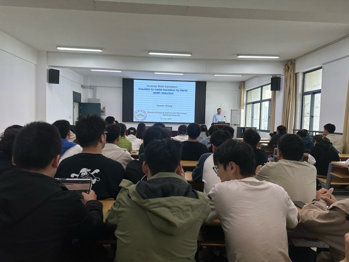 报告结束后,张国仁与研究生们针对报告中提到的新型金属化机制与经典莫特理论之间的显著差异等问题展开了深入的探讨。此次报告会为南通大学第十九届学术论坛系列活动之一,不仅开拓了我院研究生的科研视野,更激发了学生们的科研热情。