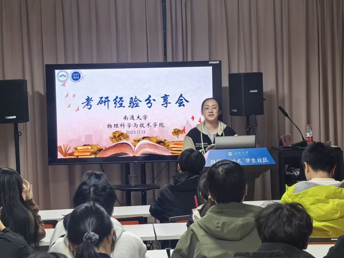 为助力 2026 届毕业生精准把握考研备考节奏,明晰备考方向,提振应考信心,11 月 13 日,物科院于静园“一站式”学生社区举办考研经验分享会。活动特别邀请学院研 25 级光电信息工程专业硕士张奇、研 25 级物理学专业硕士李响,以“过来人”的视角,为学弟学妹们倾囊分享考研历程中的实战经验与成长感悟。