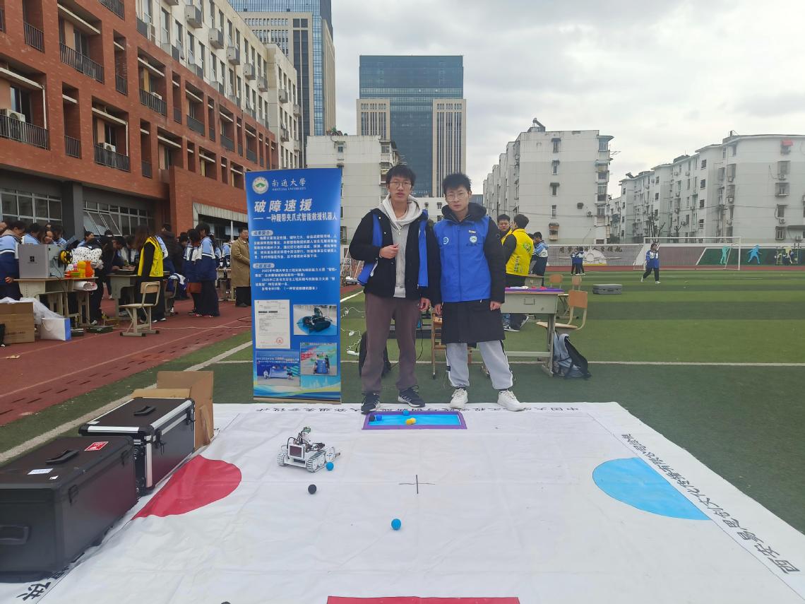 12 月 31 日,物科院“破障速援”科创团队携作品“履带夹爪式智能救援机器人”惊艳亮相南京航空航天大学附属高级中学“星海启新・翱翔未来”校园科技节暨迎新年活动现场,为现场师生及家长带来了一场前沿科技与实践创新的视觉盛宴,成为“科技前沿”展区的一大亮点。