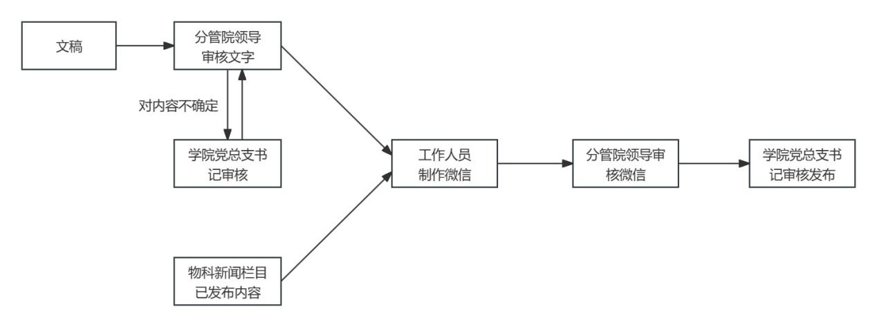 物科院网站各栏目的发布内容,由学院领导根据班子分工审批。物科院微信公众号由学院党总支书记审批或授权审批。如遇不确定内容,可班子协商讨论、形成共识。