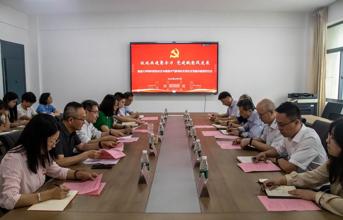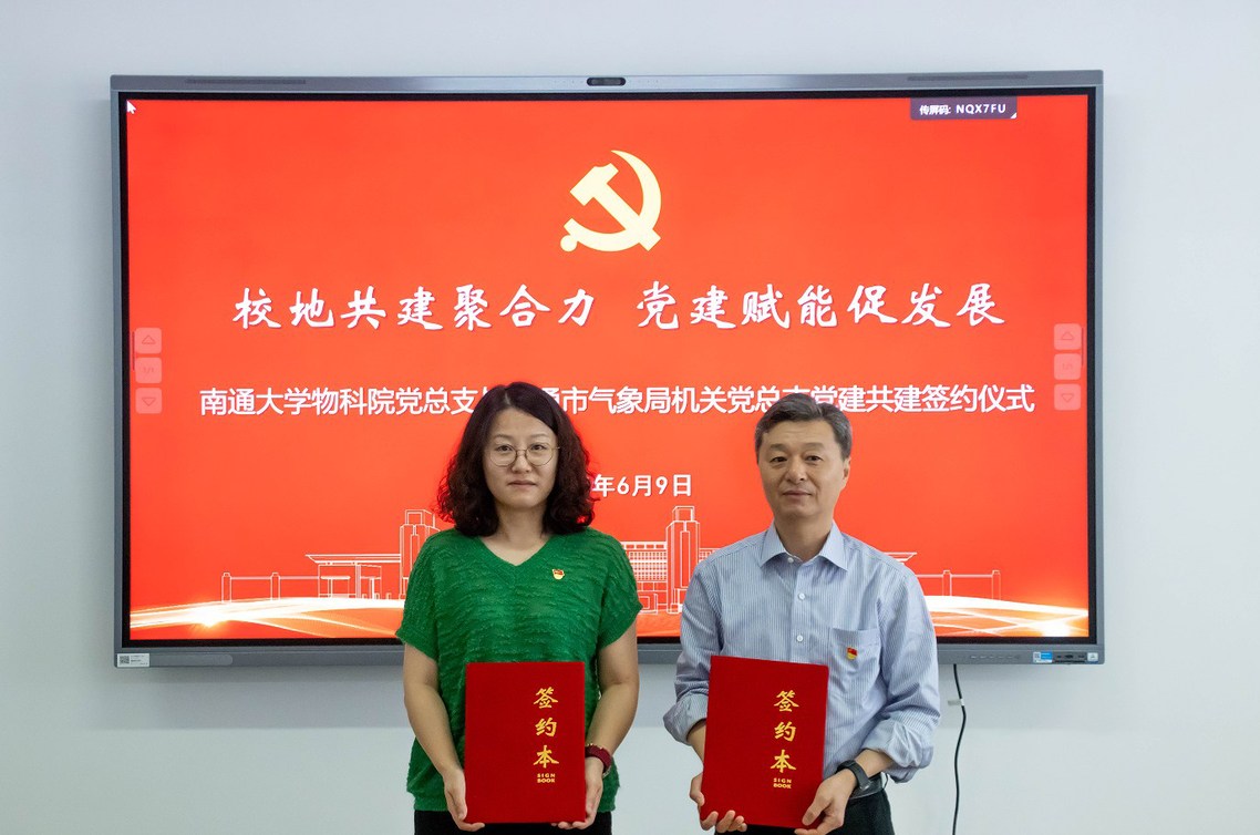 为深入贯彻落实南通市人民政府与南通大学“名城名校” 融合发展战略,深化校地互动交流合作,6月9日,南通大学物科院党总支与南通市气象局机关党总支举行党建共建签约仪式。校党委常委、副校长徐骏出席签约仪式并讲话。南通市气象局党组书记、局长严迎春和物科院党总支书记徐凌共同签署了《党建共建协议书》。