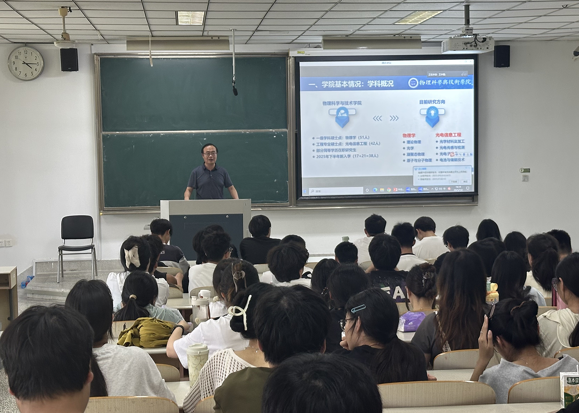 为助力2026届本科毕业生深入了解考研形势,指导学生科学规划备考路径,7月2日,物科院举办2026届毕业生考研宣讲会。物科院党总支副书记、副院长陈丽主持宣讲会,副院长于忠卫、优秀校友海学集团董事长刘秀全分别做了招生宣讲以及备考指导。