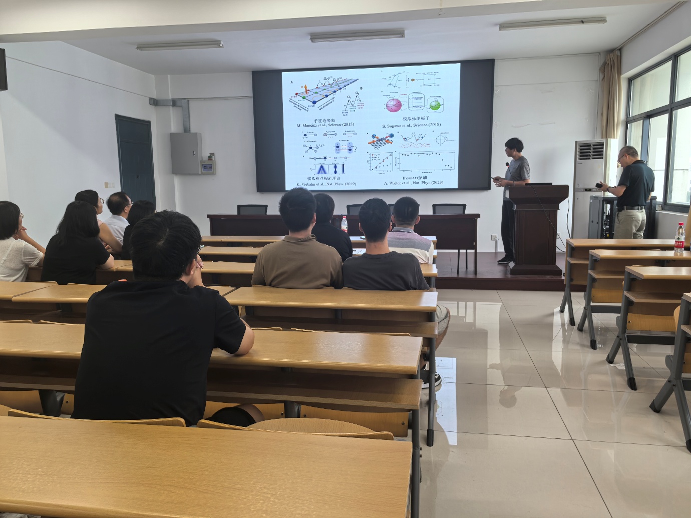 吕昊本科毕业于天津大学电子科学与技术专业,博士毕业于中国科学院上海光学精密机械研究所物理学专业,随后在上海大学和日本冲绳科学技术大学院大学从事博士后研究工作。他的研究方向包括非线性动力学、超冷原子物理和量子光学,已在物理学主流期刊上发表SCI论文21篇,其中以第一作者或共同通讯作者身份发表10篇。吕昊在报告中介绍,超冷原子具有纯度高、相干性好和可控性强等优点,是模拟量子多体物理的理想平台。在这一系统中,通过控制光与原子相互作用可实现人造规范场,为研究新奇量子相和拓扑物态提供了理论依据。