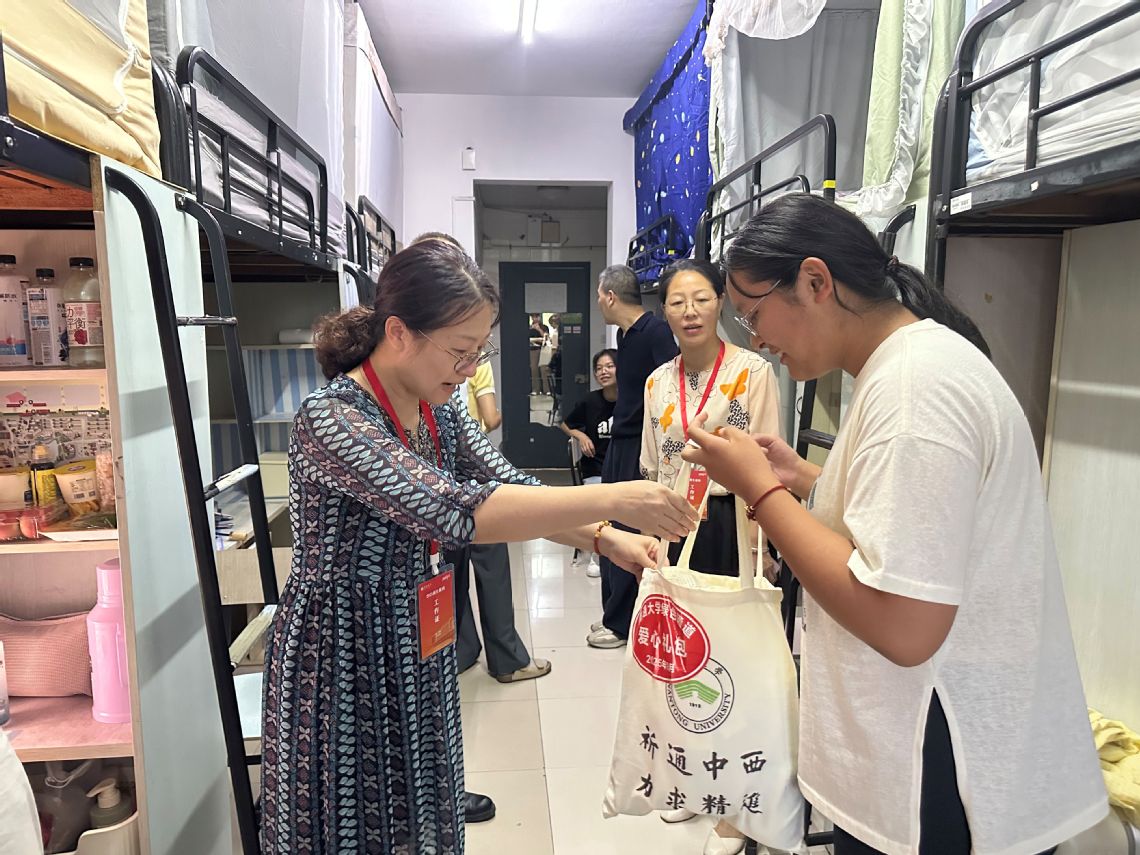 为做好2025级新生的迎新工作,学院学工团队提前统筹部署,志愿者与班主任助理早早抵达报到现场,将材料发放、氛围营造、盲盒抽奖等环节安排得井然有序。从校门到宿舍,志愿者们穿梭忙碌,一边以饱满热情引导新生签到、核对信息,一边结合自身经历,细致解答“校园活动参与”、“专业课程学习”、“图书馆预约”等疑问,用贴心服务为初来乍到的本研新生筑牢“第一份安心”,让迎新现场既高效规范,又满含人文温度。为进一步了解新生入住情况,学院领导与学工团队还专程走访本研新生宿舍,与新生及家长近距离交流。从床铺舒适度、生活用品配备,到校园生活指引、学业规划建议,关怀细致入微。徐凌仔细询问新生对校园与住宿环境的感受,重点关注他们的成长需求,期望研究生尽快完成角色转变,以严谨态度深耕专业领域,在基础研究与应用探索中突破自我。仲崇贵勉励本科生在夯实学业基础的同时,积极参与社团活动、学科竞赛与社会实践,让校园生活兼具厚度与活力。新生们纷纷表示,将珍惜学习机会,不负嘱托,全力追逐人生目标。