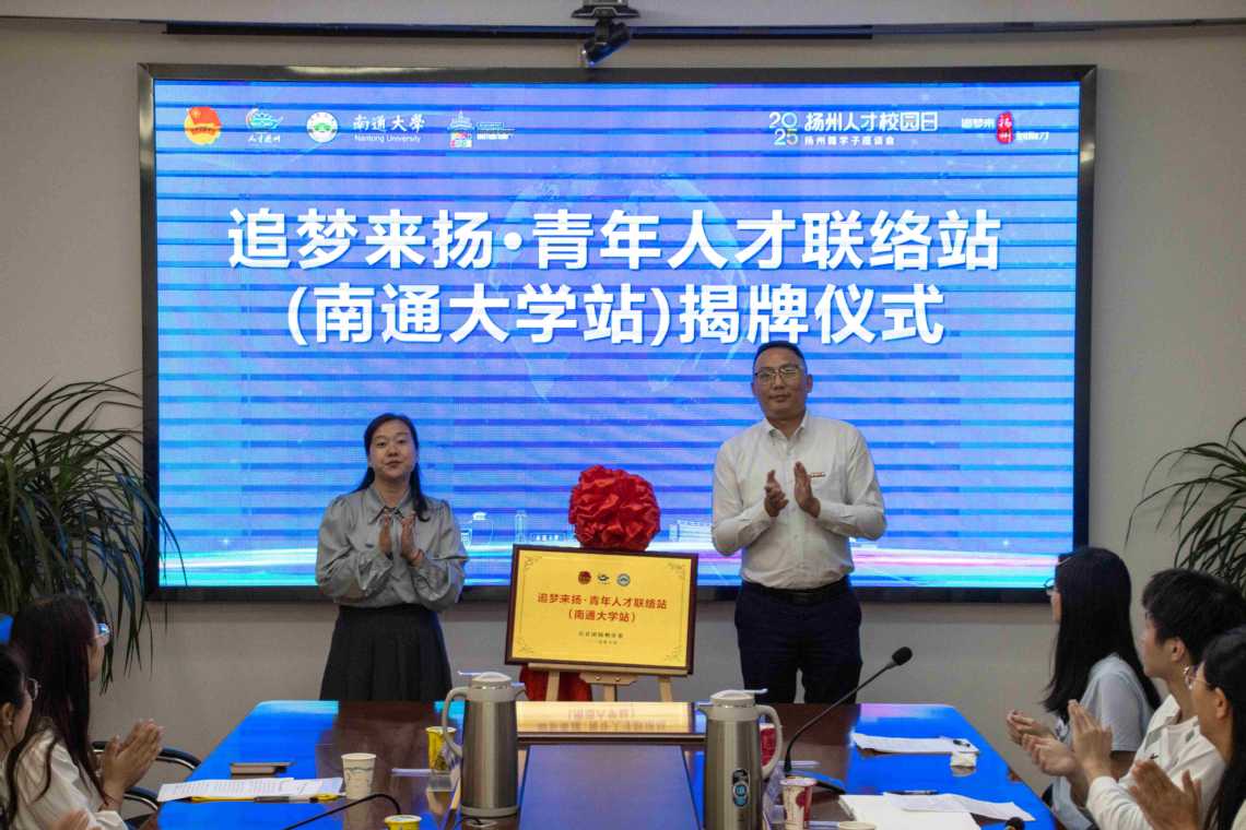 10月15日,“团”聚青才——扬州·南通大学专场座谈会在我校成功举行。物理科学与技术学院党总支书记徐凌出席活动并致辞,校团委副书记(主持工作)施玮、扬州团市委副书记卞娇娇共同为“追梦来扬·青年人才联络站(南通大学站)”揭牌。