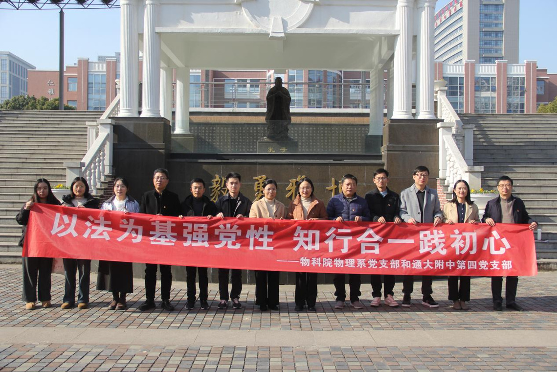 12月16日上午,物科院物理系党支部与南通大学附属中学第四党支部联合举办“以法为基强党性 知行合一践初心”主题党日活动,以法治理论铸魂、专业赋能提质为核心,推动高校与中学党建共建、资源共享,为大中小学教育一体化发展注入新动能。